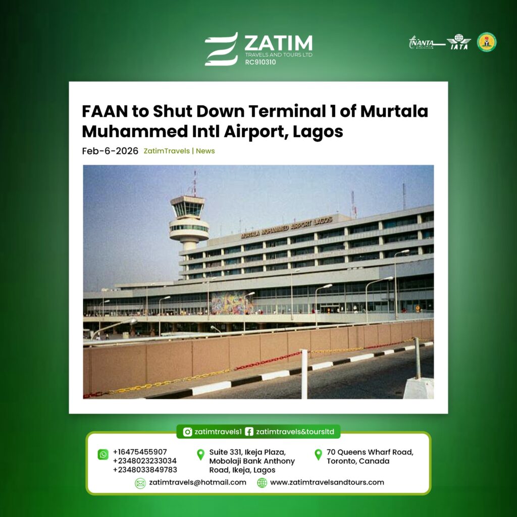The Federal Airports Authority of Nigeria has announced plans to shut down Terminal 1 of the Murtala Muhammed International Airport in Lagos for rehabilitation works.